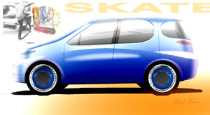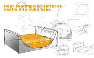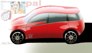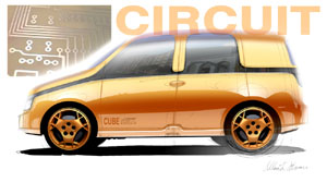The CUBE has been a successful product for years in the Japanese market but, not available in left hand drive, was not imported to the USA. The corporation decided to enter our market and commissioned NDA, among other Nissan studios, to do the design. |
