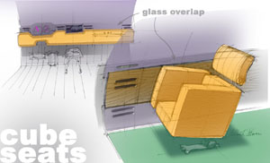 INTERIOR design development went in various directions, many of which are based on the CUBE identity itself. |