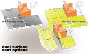 This series is a completely different approach - based on a light open look with the seats gliding on a floor "puck". |